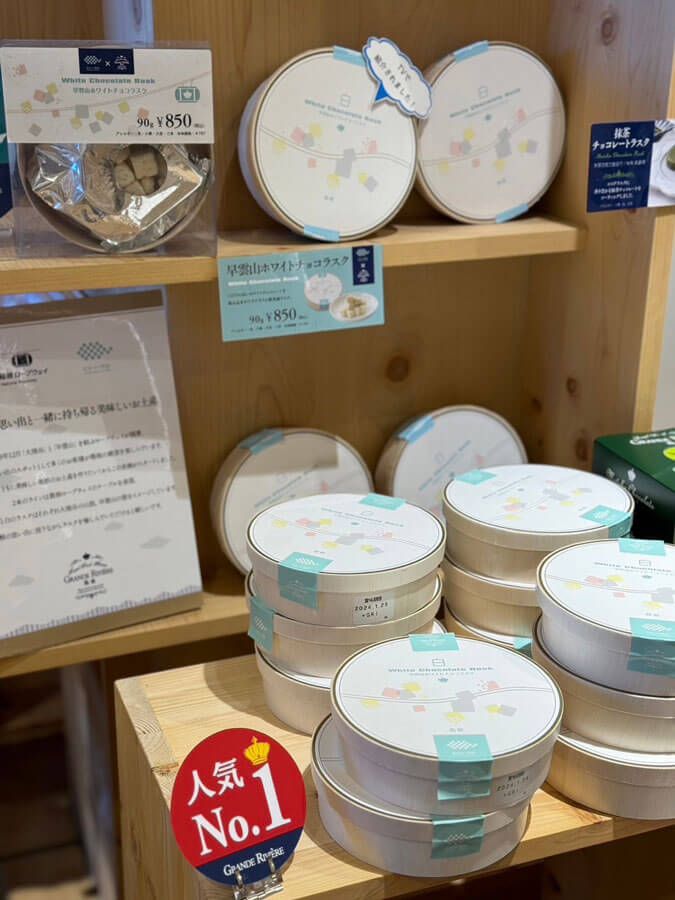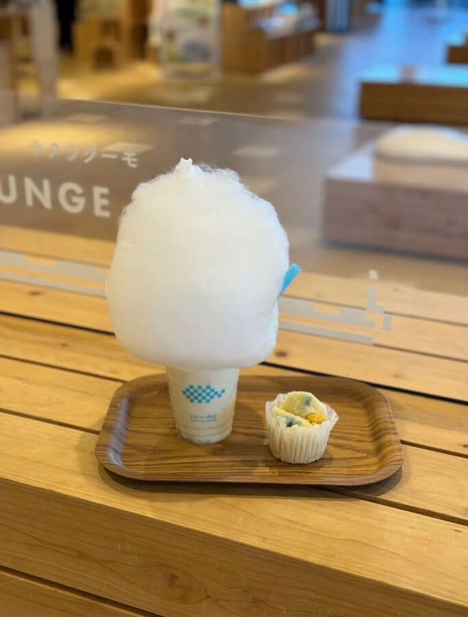購入できるのは、早雲山駅の2階にある「cu―mo箱根」という商業施設。足湯に浸かりながら景色を楽しめる癒しのスポットになっています! その中にあるセレクトショップ(お土産屋さん)に売っている、「ニューベル」という綿あめを雲に見立てたドリンクや、「くもぱん」という可愛い蒸しパンが有名です♡