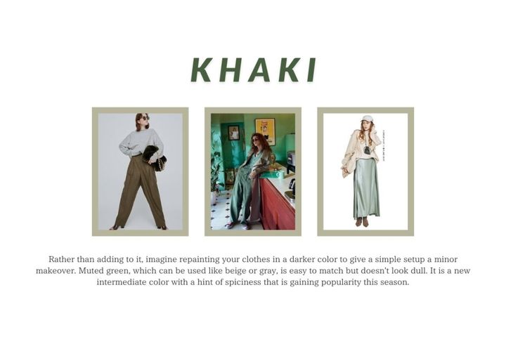 3. どっちつかずな色だから「どっちもいける」合わないテイストがない「アクセントにも着回しにも向く」注目色“ずるいカーキ”とは?