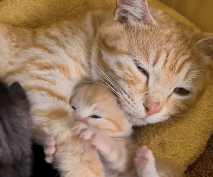3. ママ猫さん「眠いのよ〜」と、ウトウトしながらも子育てを頑張る!