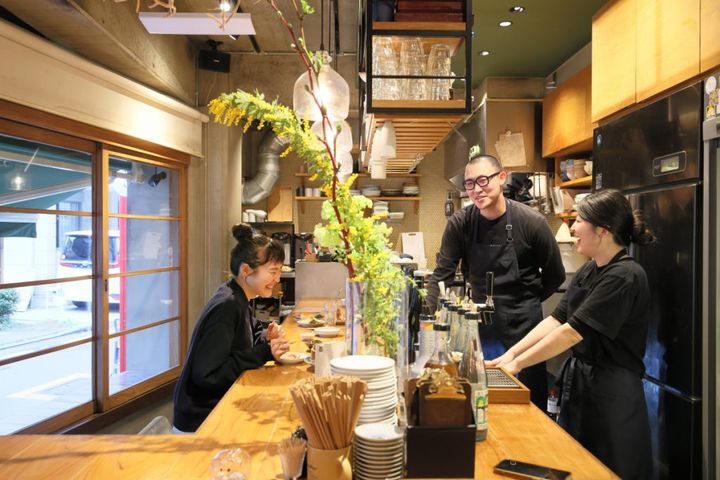 カウンター席に座ると料理する手もとや、次々と作られるおいしそうな料理も見え、気さくなスタッフさんたちとの会話も楽しめます。