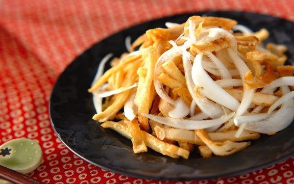 カリカリになるまで炒めた油揚げとチリメンジャコがポイント! みずみずしい新玉ネギの甘さと絶妙にマッチします。ついついお酒が進んでしまいますよ。