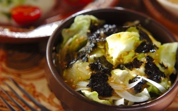 オリーブ油でヘルシーに仕上げます。焼きのりと白ゴマのトッピングにより、香ばしいのも魅力です。新玉ネギの甘味もしっかりと感じられますよ。スタミナ系のおかずとも相性が良さそうですね。
