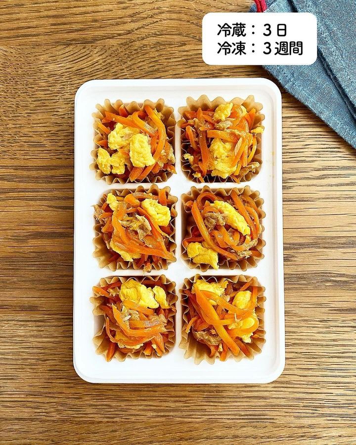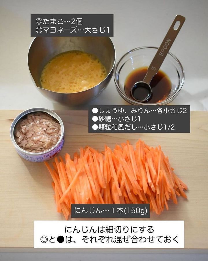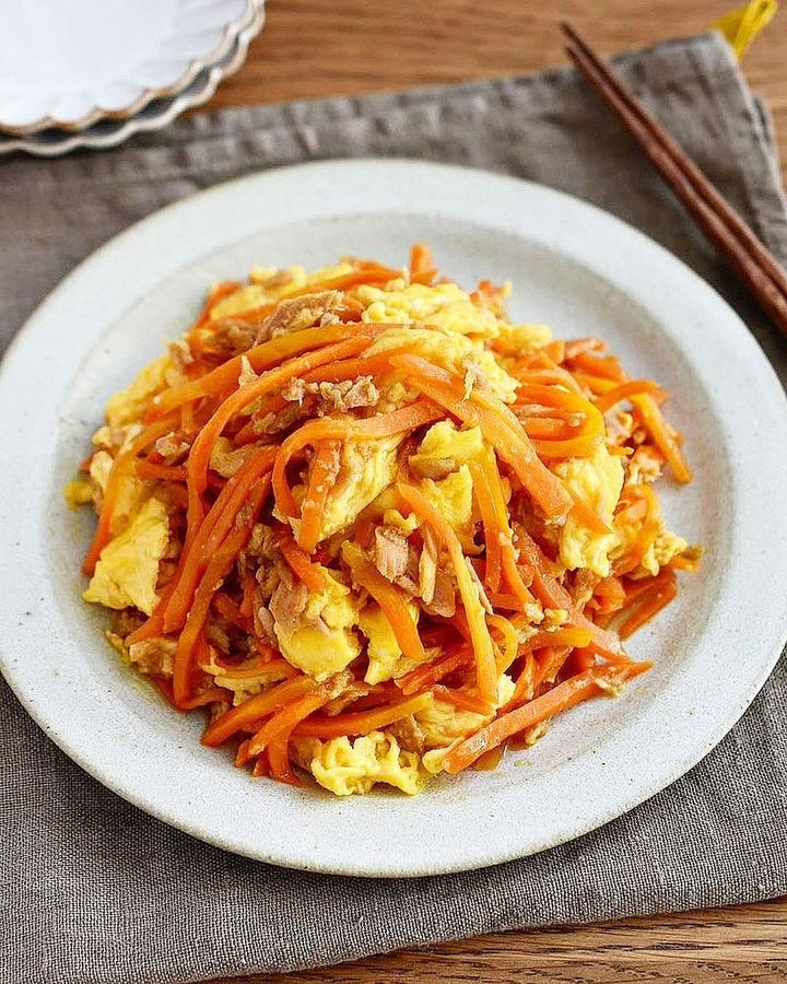 ごはんが無限に進む、にんじんしりしり。卵にはマヨネーズを加えることでふわふわ食感に。レシピ本も出版されている@tsukicookさんのベストオブ副菜、ぜひ作ってみてください。