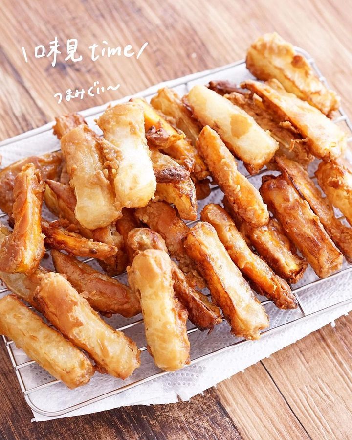 フライドポテトよりカロリーも控えめな一品は、おやつやお酒のあてにもぴったり。お好みでケチャップやスイートチリソース、マヨネーズをつけて召し上がれ!