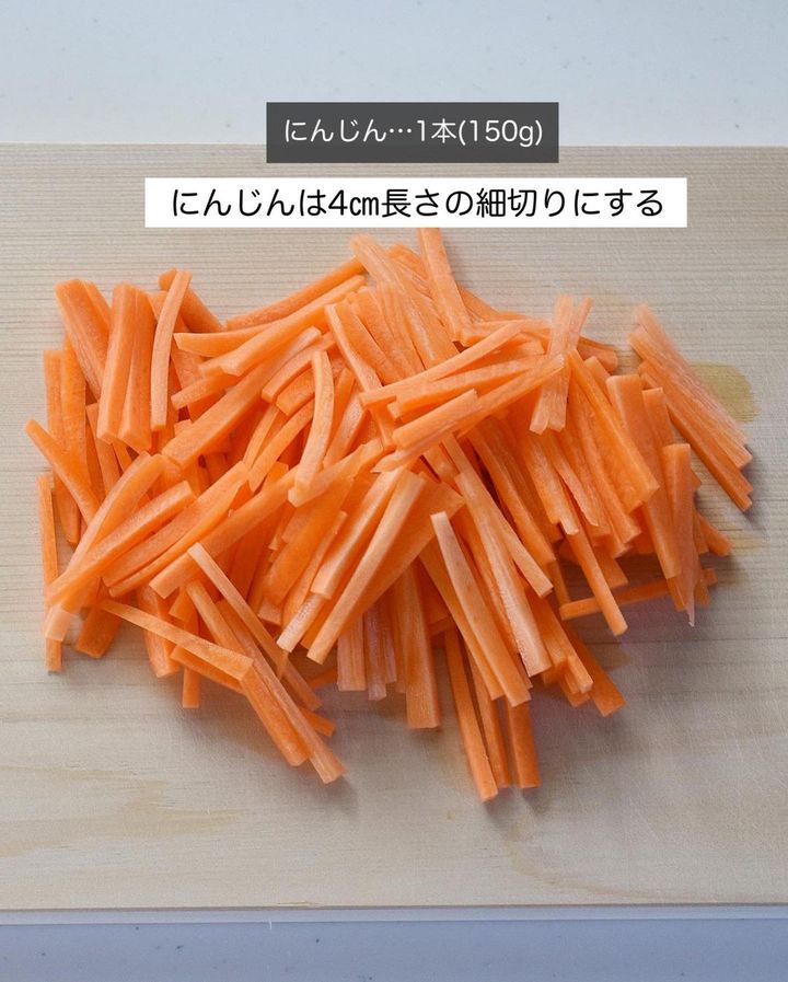 1. にんじんは4cm長さの細切りにする。
