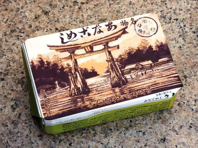 これも美しい駅弁ですね。日本三大急潮の一つである来島海峡で育つ天然真鯛を使っているので、極めておいしい。容器に笹の葉を1枚敷き、白い酢飯を詰めて大葉をのせ、鯛の身で一面を覆う。鯛の白身の下に敷かれた大葉が透き通って見えるのがアーティスティック。