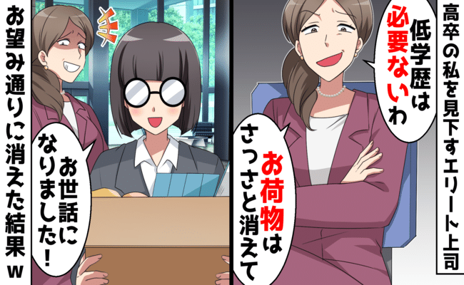 高卒の私を見下すエリート上司「低学歴は必要ないわ」⇒お望み通りに消えた結果、とんでもない結末に