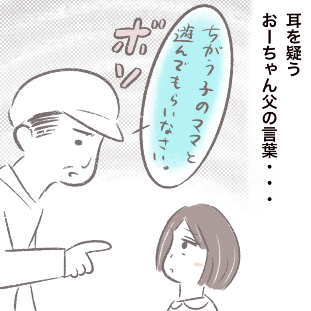 自分で娘の面倒をみる気が全くなく「一緒に遊んでやって下さい」と堂々と言うおーちゃんの父親にやつれさんはドン引き。「妻は我が子と遊びに来てるんで!お嬢さんの面倒は見れません!」とキッパリ伝えその場を離れようとしたやつれさん。「待って!」とまだついて来ようとするおーちゃんを父親が制止したのでホッとしていると・・・父親が「違う子のママと遊んでもらいなさい」とおーちゃんに言っているのが聞こえて・・・。