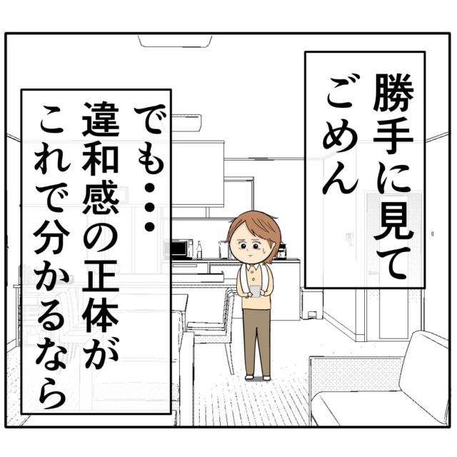 すみれさんに「今日土曜だし夜泣きしたら俺に任せて」と言いお風呂に行くと席を立った良し男さん、「様子もおかしいし、こんなに堂々とスマホ置いていく・・?」と逆に怪しむすみれさんは「あえて堂々と置いて『怪しくないアピールしてるとか?』」とスマホを・・
