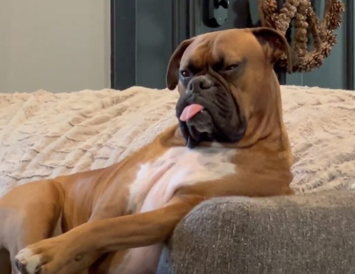 2. くつろぎ方が人間っぽい犬さん! お気に入りのソファでまったり♪