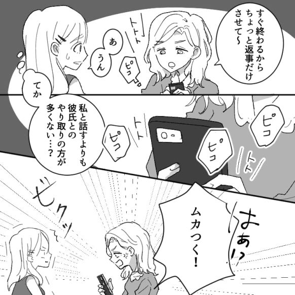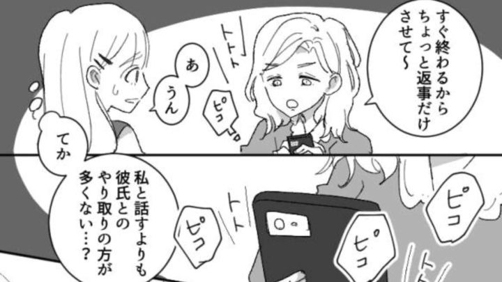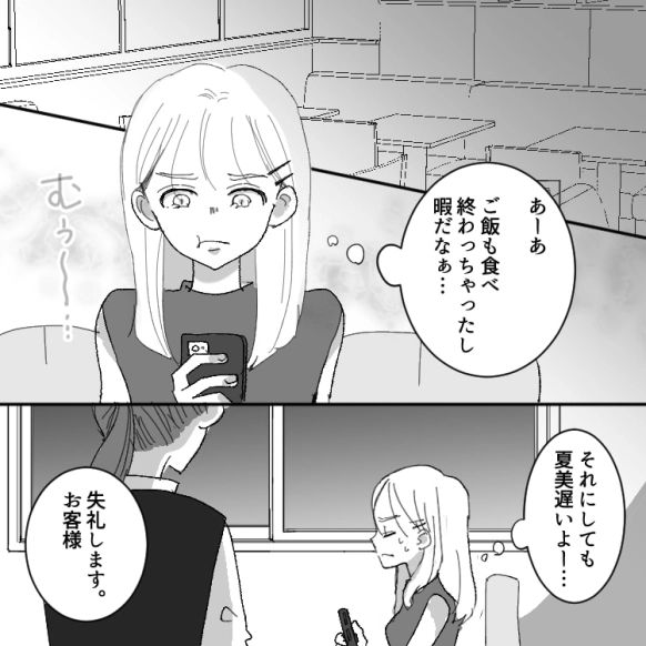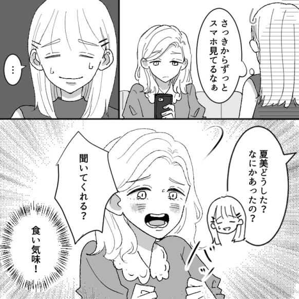 最初は盛り上がっていたのですが、次第に夏美は主人公との話よりもスマホに夢中になり……。