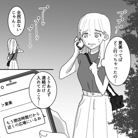 主人公には、夏美という友だちがいます。彼女からご飯に誘われ、行くことになりました。