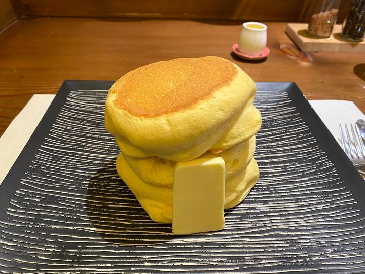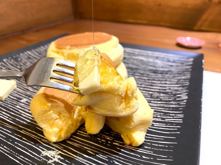 「紅鶴」のパンケーキはメレンゲをたっぷりと使った、スフレのようなふわふわの食感が魅力!完成から時間が経つとしぼんでしまうそうなので早めに食べるのがおすすめです。また、生地は小麦粉ではなく米粉で作られていてグルテンフリー。食べたあとも重さを感じにくくなっています!