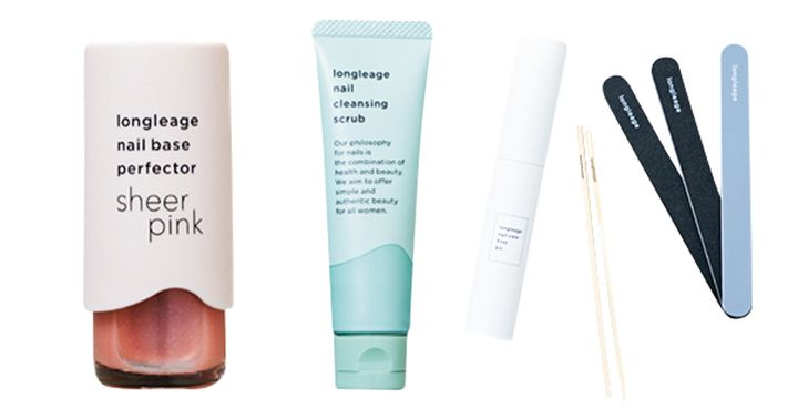 1.ネイルケア ファースト キット¥2,310 2.ネイル クレンジング スクラブ20g¥2,970 3.ネイル ベース パーフェクター シアーピンク10ml¥2,970(すべてロングルアージュ)