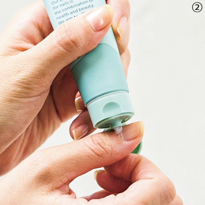 ② 甘皮ケアは2.のこれ1本で。スクラブを爪の根元に置き、全体に円を描くように伸ばしてお湯で流す。