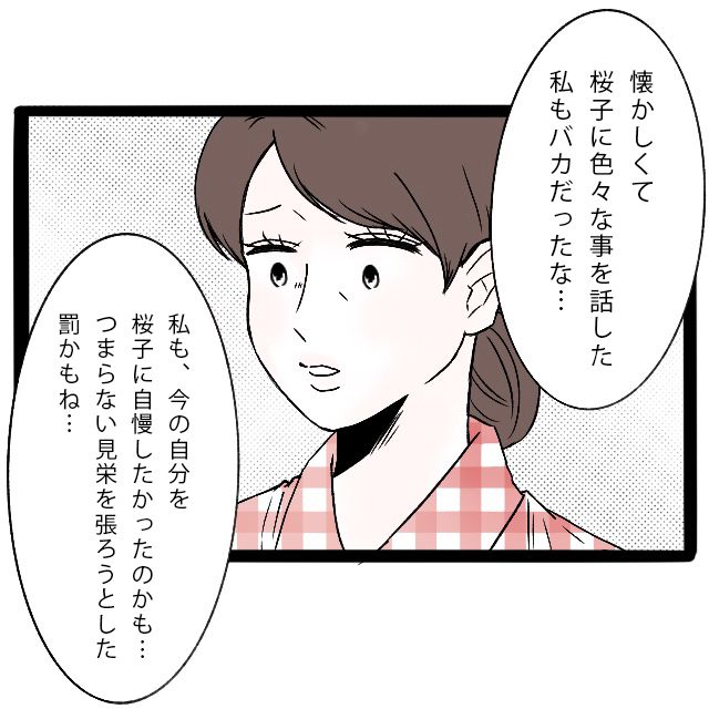 「懐かしくて桜子に色々なことを話した私もバカだったな・・・私も今の自分を桜子に自慢したかったのかも・・・つまらない見栄を張ろうとした罰なのかもね・・」