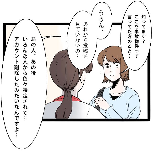 「あの人、あの後いろんな人から特定されてアカウント削除したみたいなんです。」