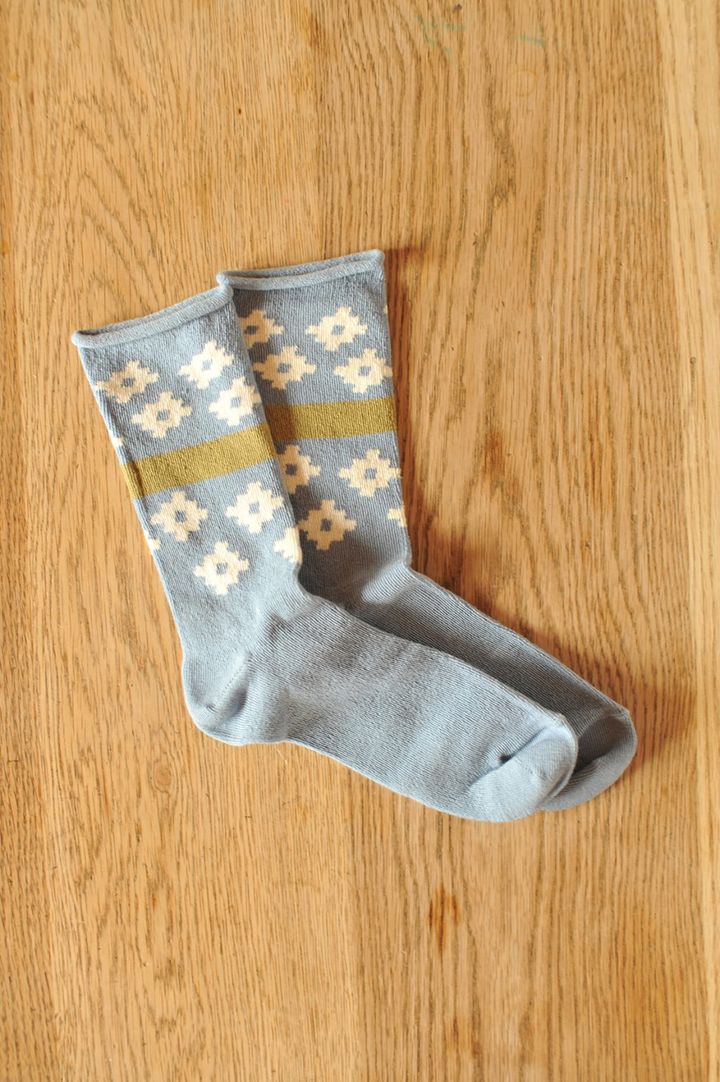 歩くたびに春の息吹を感じさせてくれる柄「lake weaving」は、氷が溶けたばかりの湖のシャーベットブルーが、春の明るいコーディネートの差し色としてもおすすめ。足もとから、季節の変わりめを楽しめそうです。