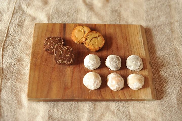 「学校から帰った子どもたちが安心して食べられるお菓子」を大切に作り続け、地域の人に愛される、ぬくもりを感じられる味。スノーボール(ピーカンナッツとヘーゼルナッツココア)、クッキー(ヘーゼルナッツコーヒーとココナッツオートミール)の4種類です。