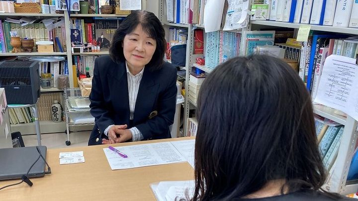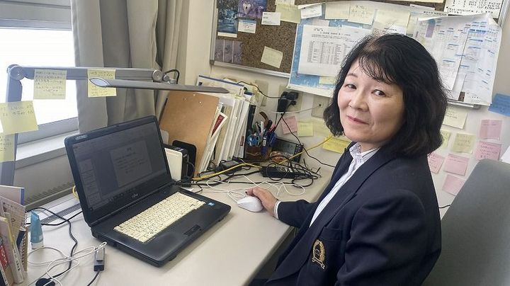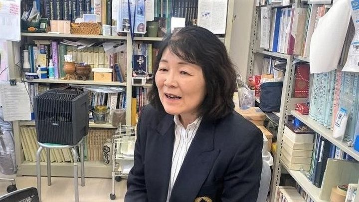 2024年1月の取材時の研究室で話してくださる石井智美先生(64)