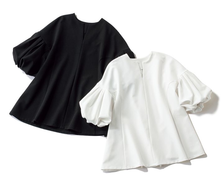 バルーンスリーブブラウス ホワイト、ブラック ¥16,500
