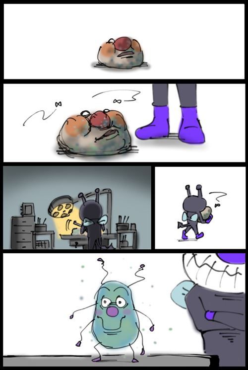 もちろんこれは退屈健さんの創作漫画なのですが、まさかのその古い顔から手下の「かびるんるん」を作っていることにも思わずビックリしてしまいますね(笑)
