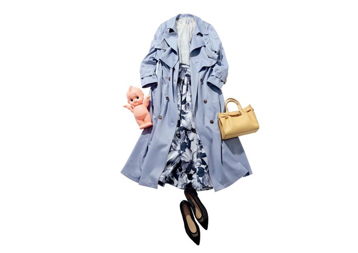 ブラウス付きワンピース(ブラウス)¥19,910/ミラ オーウェン ルミネ新宿2店 3WAYトレンチ¥24,970/Swingle 有楽町マルイ店 フラワースカート¥22,000/ジャスグリッティー イエローバッグ¥11,000/アンタイトル チュールパンプス¥2,290/GU
