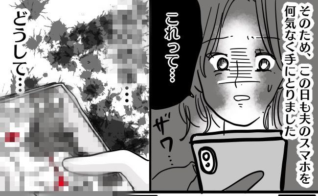何もかも手探り状態だった第1子の子育て。産後半年から社会復帰した私は、すぐ熱を出す子どものケアと仕事の両立に四苦八苦しており、疲れ果てて寝落ちするのが日常でした。もちろん平日も帰宅した夫とは必要最低限の会話しかしていない毎日……。しかしある日、ふと夫のスマホを借りたとき、衝撃的なものを見てしまったのです。