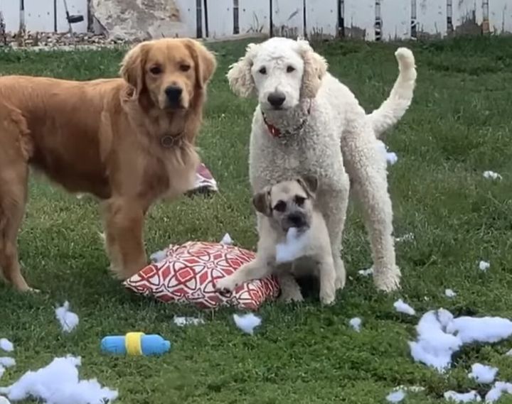 飼い主さんが犬さんたちのイタズラを発見して、