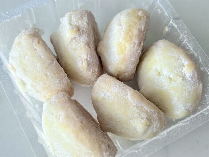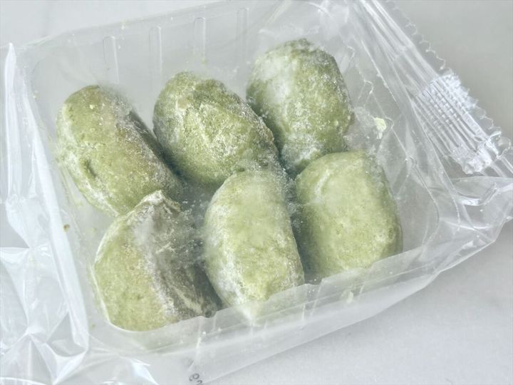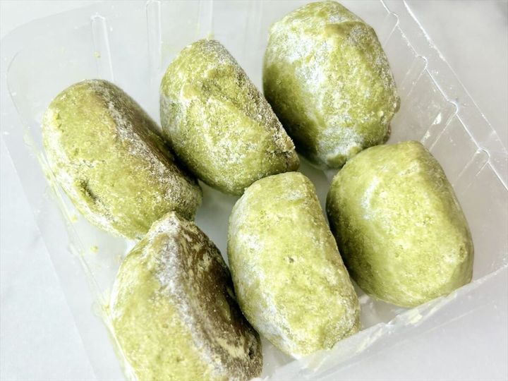 袋から、透明のプラスチック容器に入った「京ほろり」を取り出します。容器には、抹茶色の「京ほろり」が6個入っていました。