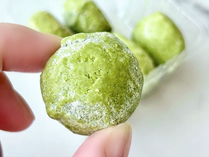 食べてみると、サクッとしつつもソフトな食感で、口の中でほろりとほどけます。それとともに広がる、濃厚な抹茶の風味。しっかり抹茶の苦味やコクも感じられます。ほのかに感じられるアーモンドのコクが、抹茶の風味とマッチした大人の味わいです。