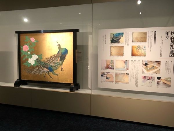 《松・牡丹孔雀図衝立》呉春・亀岡規礼筆の作品が煌びやかに蘇っています。