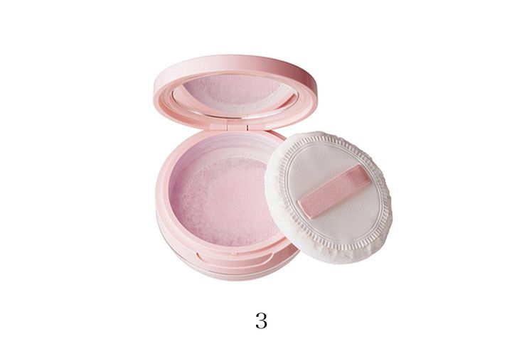 ふんわりピンクのパウダーで自然な血色感をプラス。