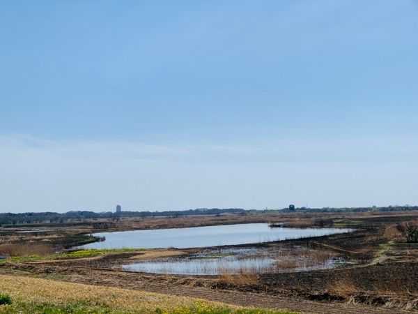 見渡す限り広がる雄大な光景。 しばし日常生活を忘れて、頭を空っぽにして過ごしたいですね。 冬の空気が澄んでいる頃には、富士山が見えるときもあるそうです。 3月の初めには一帯でヨシ焼きが実施されますが、その場合もこのあたりがビュースポットになります。