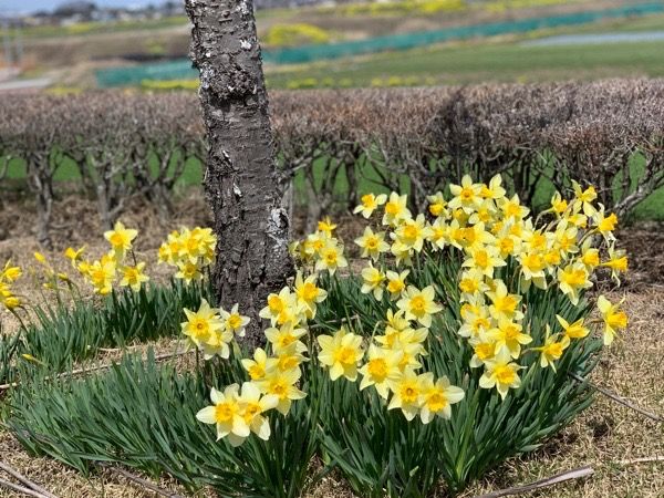 桜の足元には様々な水仙が植えられていて、春の訪れを実感。