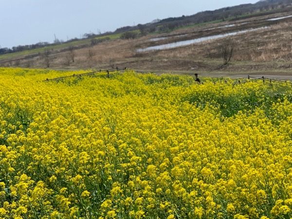 3月終わりに訪れた際は、菜の花が一面に咲いていました。 皆さん、思い思いに写真を撮っていました。