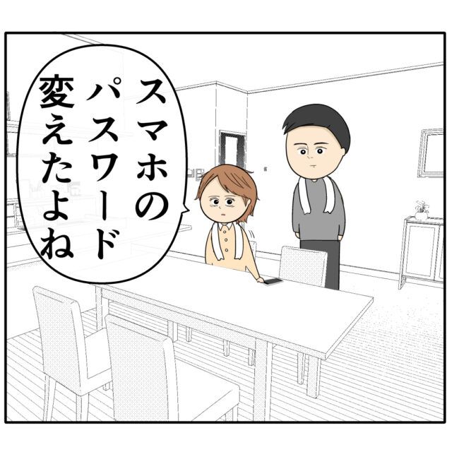 最近の良し男さんの様子に違和感を感じていたすみれさんは、良くないと思いながらも今まで一度も見ようと思ったことがなかった良し男さんのスマホを見てみることに。しかし、すみれさんが知っているパスワードを何度入力してもスマホは開かず、良し男さんに隠し事があることを確信。お風呂から出てきた良し男さんに「あのさ」と切り出します・・・。