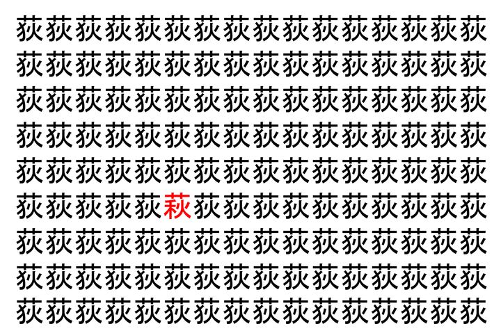 画像に並んだたくさんの「荻」という漢字。 その数144個なのですが・・・、実はその中に1つ違う漢字が紛れ込んでいます!!