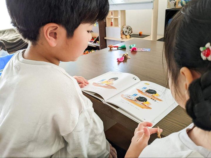 長男と読みながら笑っていると、3歳の長女も気になったのかやってきて絵本を覗き込み、「あ!ストロー!取れなくなっちゃったねぇ」と一緒に笑っていました。文字が読めなくても絵で何が起こったのかわかるので、小さな子どもも楽しめるのもうれしい♡ 1回読み終えると、今度は子どもたちだけで読みながら笑っていました。