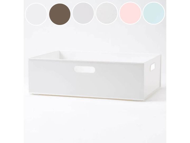 カラーボックスや棚に置いて使うと便利ですが、ピタッときれいに積めるので、床置きしてとりあえずの一時収納スペースにしても。