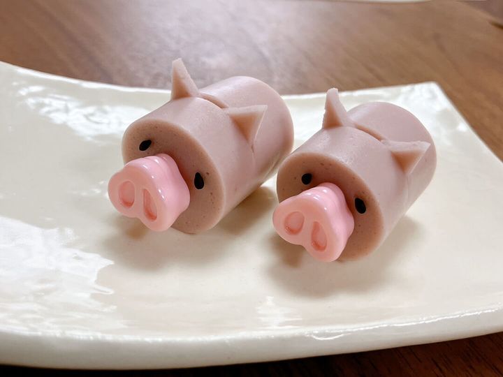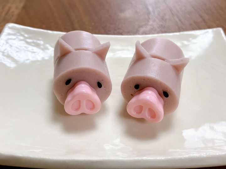 黒ごまで目をつければ完成!「ブーブー」と鳴き声が聞こえてきそう!