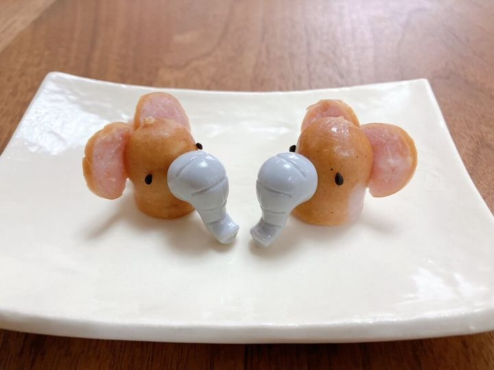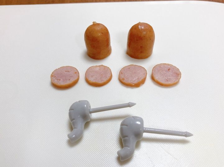 ピックと食材の色が違うのでかわいくできるか疑問だった「ウインナーゾウ」ですが、意外といい感じ!