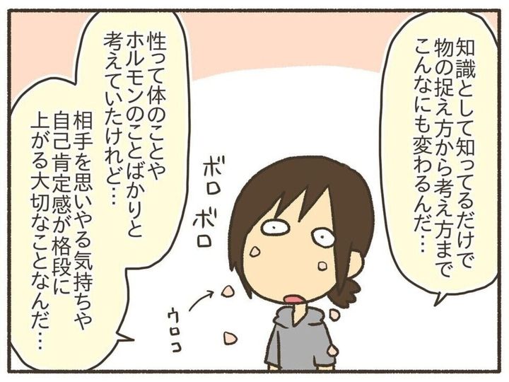 自分自身が自分の体のことで知らないことが多すぎて衝撃を受けたというなおたろーさん。知識として知っているだけで、相手を思いやる気持ちや自己肯定感にもつながることを改めて感じ、正しい性教育が大切な学びだということに気づいたそう。