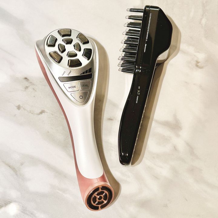 「以前共演した彩乃かなみさんと早見あかりさんにすすめられて購入したデンキバリブラシⓇとルクセアの美顔器を楽屋にも持ち込んでケアしています。『強くすると上がりすぎるからね』とおっしゃっていたとおり、即効性がすごい!疲れもほぐしてくれるので手放せません」