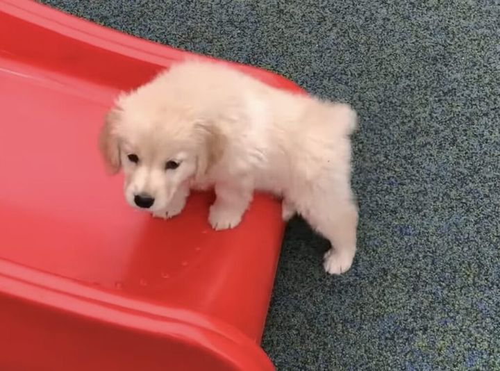 3. 遊具ではしゃぐ子犬さん「ビュンっと滑るから見ててね! 」