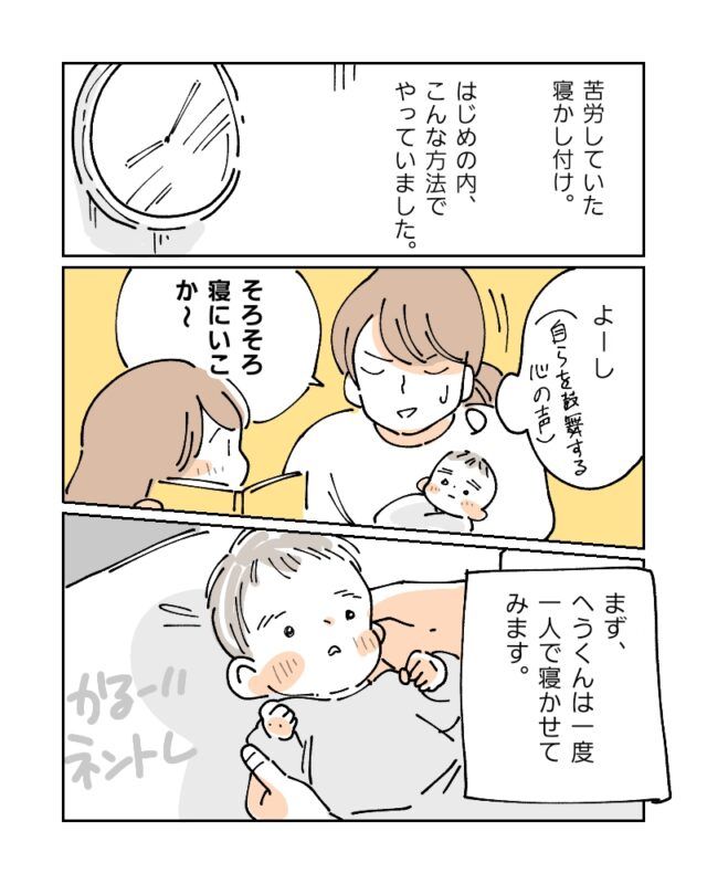 はじめの内は、まずへうくんと1人で寝かせてみて・・