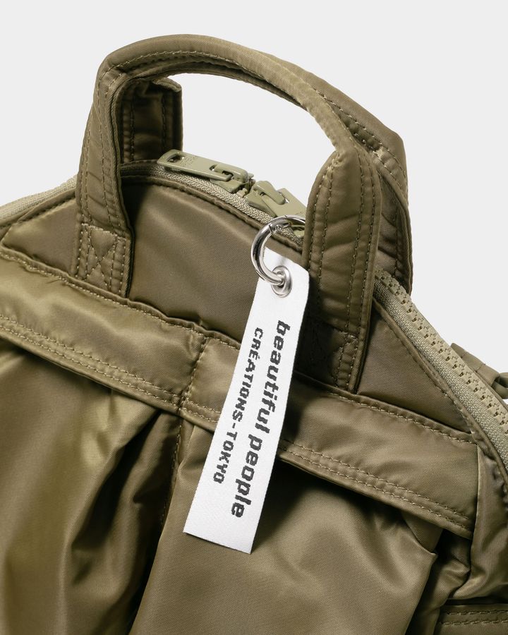 吉田カバンの代表的なバッグをベースに角が丸くアレンジされ、背面にボディと同色のロゴが入った「ヘルメットバッグ」。耐久性に優れたナイロンツイルが使われているので、汚れをサッと払うことができ、公園ママもストレスフリー。オールジェンダーで使いやすい3色のニュアンスカラーは、パートナーとの兼用バッグとしても重宝しそうです。また、ストラップを外してハンドバッグとして使うのも、フォルム映えするのでおすすめ。