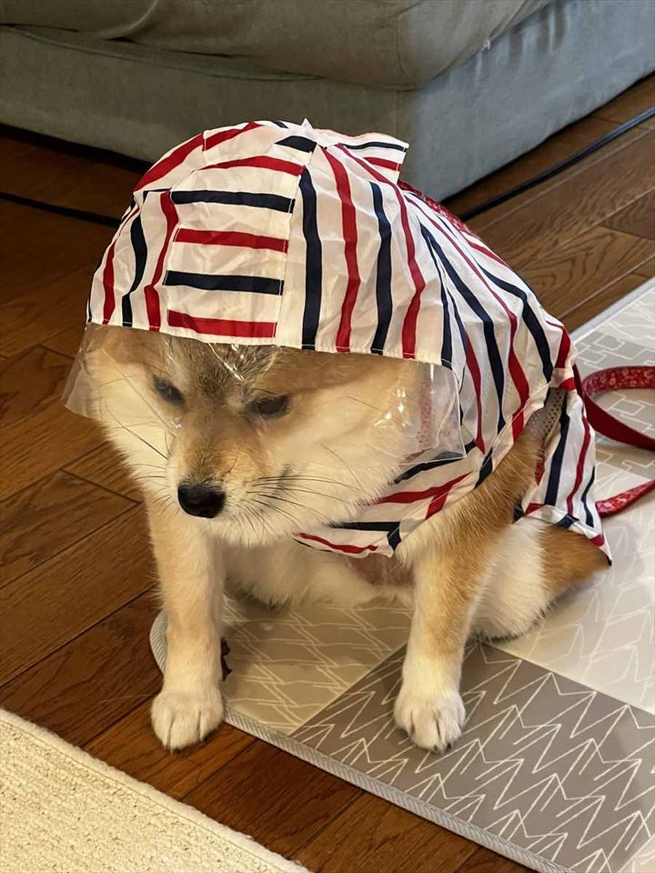 おさんぽを楽しみにしていた柴犬でしたが・・・雨具を着せられるとなると話が変わるようです。 絶望感に満ちているその姿が話題になっています!