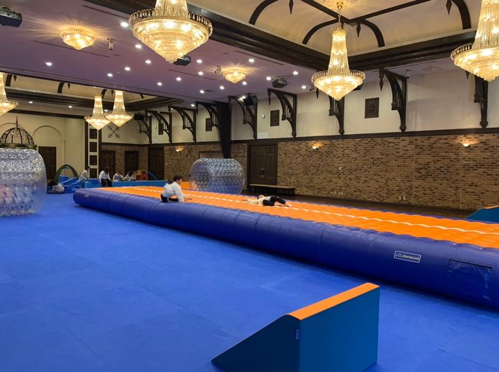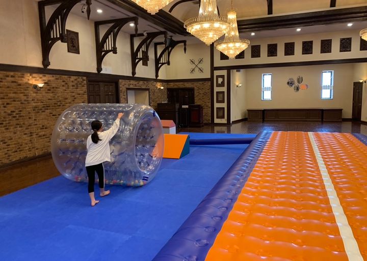それから、体を動かすブースへ一直線。飛んで、跳ねて、回って、笑って長女と次女はすでに遊びに夢中。