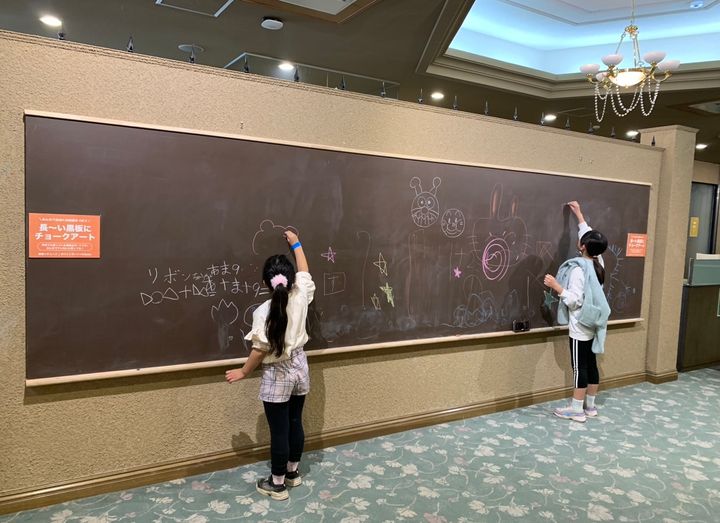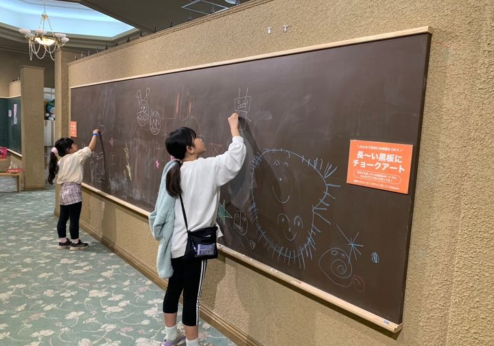 食べ終わったら広ーい長ーい黒板でお絵描き!